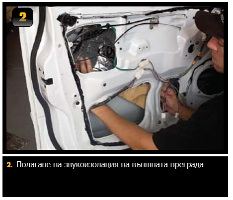 Вътрешната обвивка на на вратата е металния панел непосредствено зад декоративната кора. Говорителя в повечето случаи се монтира именно върху тази преграда и тя е най-нуждаещата се от изолация. Покриването на дупките елиминира разсейването и загубата на басовите честоти, и осигурява по-добра динамика и повече мощност на системата. С тази инсталация не само елиминирате изкривяването на звука дължащо се на резонанса на панелите, но и понижавате външния шум от шосето. Монтажът на тази изолация понижава с до 4dB шума в купето на колата. Занижение от 3dB е съизмеримо с удвояване на ефективната мощност на усилвателя. Резултатът е много изгодно и ефективно решение, което увеличава значително качеството на звука в колата и същевременно понижава външния шум.
