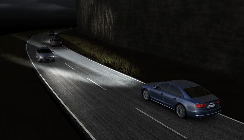 Новите матрични LED светлини на Ауди ще дебютират пред публика още тази седмица по време на автосалона във Франкфурт, където ще бъдат представени във флагманите A8 и S8. Новата технология разделя диодните дълги светлини на множество индивидуални, малки диоди, разположени в лещи или рефлектори и свързани заедно в една комплексна матрична система. Тези диоди се управляват по електронен път от контролен модул като биват включвани, изключвани или им бъде регулиран интензитета в съответствие с пътната обстановка.